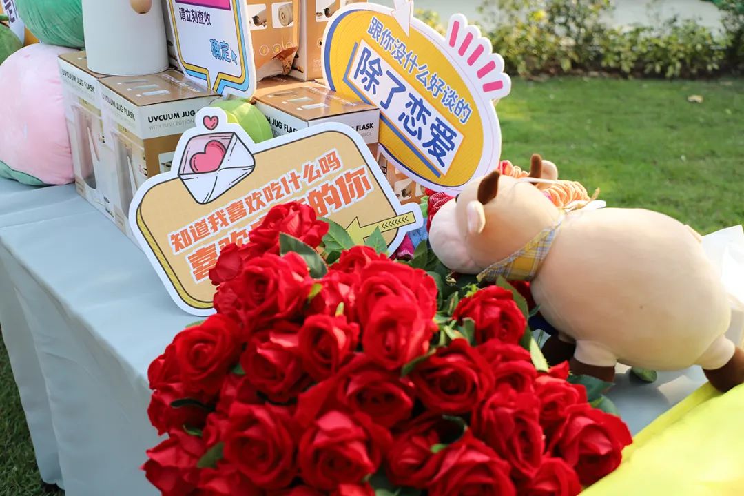 萌翻少女心的小娃娃、鲜艳动人的玫瑰花、随处可见的房车、充满春天气息的露营帐篷……活动现场到处洋溢着甜蜜、青春的气息,大家在浪漫氛围下开启交友之旅。