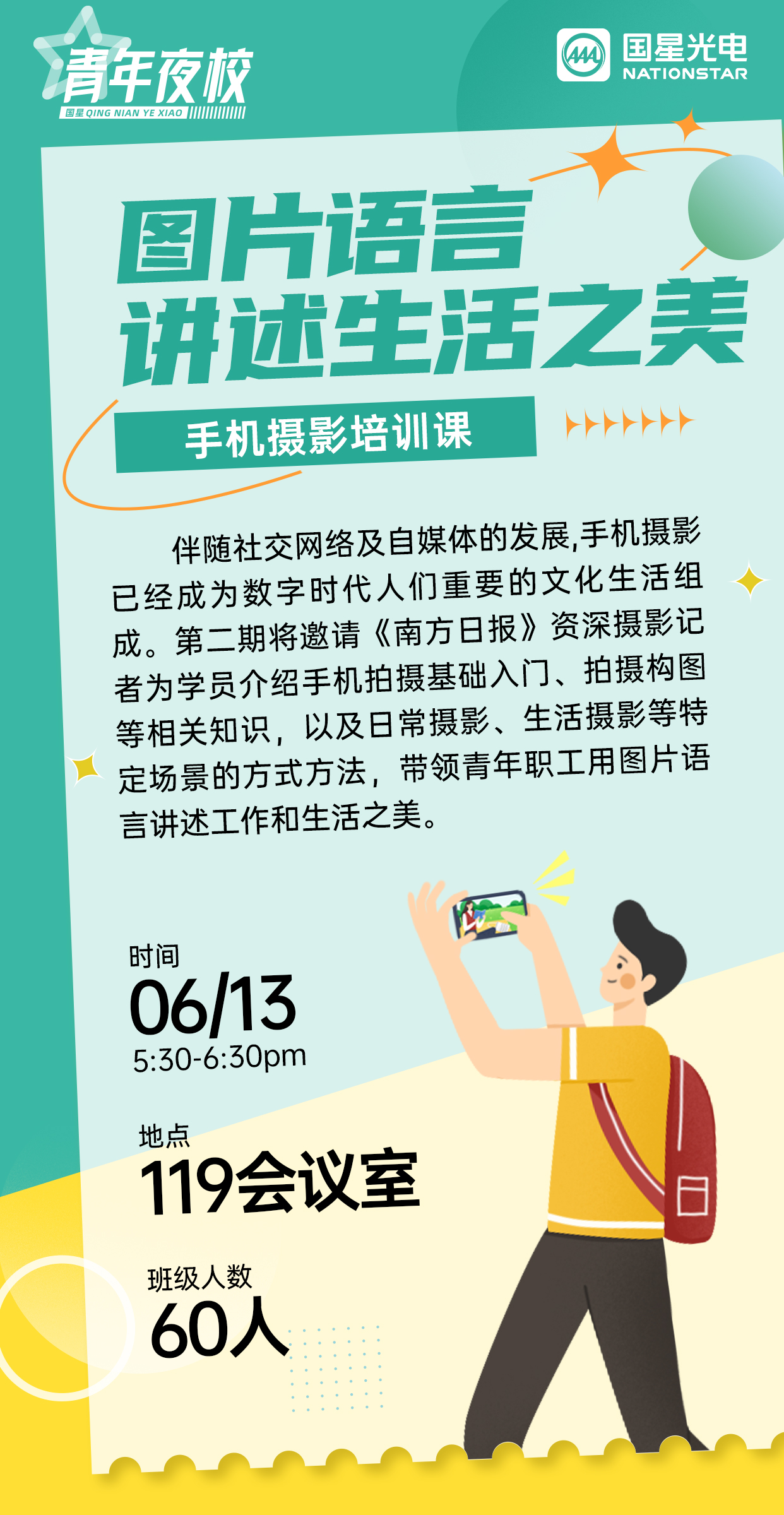 永信贵宾会青年夜校第一期课程特别邀请“南方日报”资深摄影记者为学员介绍手机拍摄基础入门、拍摄构图等相关知识,以及日常摄影、生活摄影等特定场景的方式方法,带领青年职工用图片语言讲述工作和生活之美。“如何提高照片拍摄质量,光影、场景、构图等都是我们要考虑的要素。”讲台上,老师通过现场示范,为青年详细讲解了在手机摄影创作过程中构思、构图、取景、曝光等方面的技巧。讲台下,课堂座无虚席,现场气氛活跃、热情高涨,大家都听得津津有味,有学员表示“今天学习的课程是手机拍摄,我觉得还是很有意思的,在学习摄影技巧的同时,也丰富了我们的业余生活,希望这类课程能够多多设立,我们也会积极主动地来参加。”